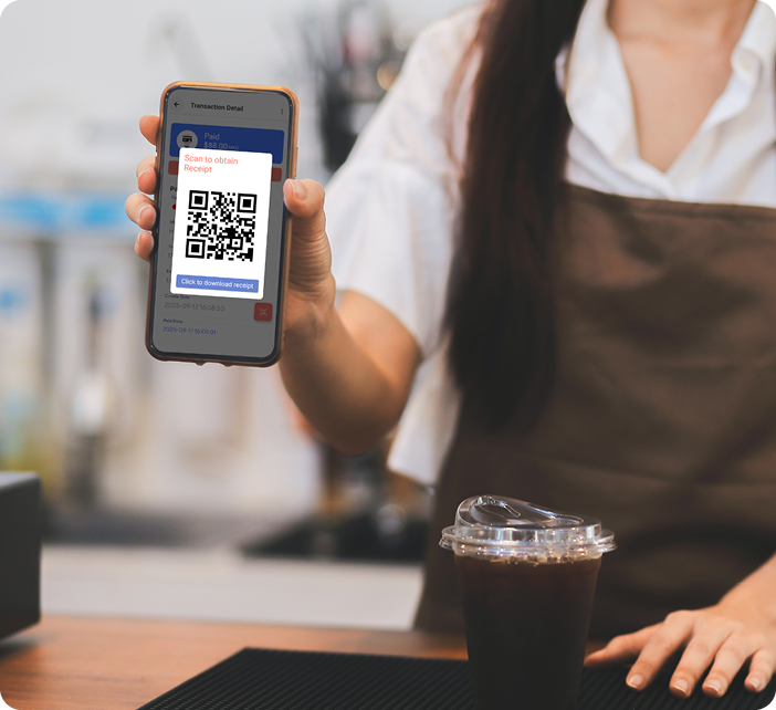 - 顧客只需掃描二維碼,即可立即下載收據到手機,省去等待列印時間